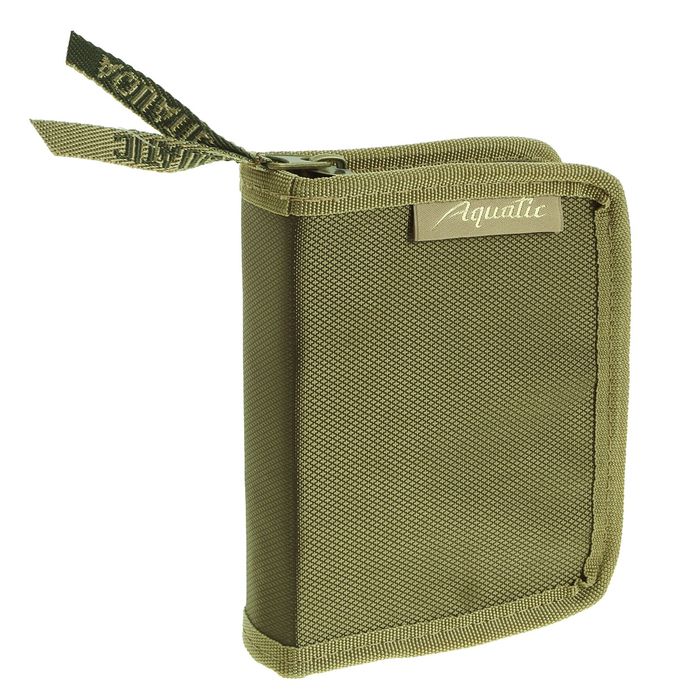 Чехол для блесен и воблеров Aquatic покрыт водонепроницаемым материалом - нейлоном с полиуритановым покрытием. Он предназначается для хранения и перевозки двадцати-тридцати воблеров или блесен, как вертушек, так и плоских колебалок. Внутри чехла установлена жесткая перегородка, предотвращающая соприкосновение и перехлест искусственных приманок.
